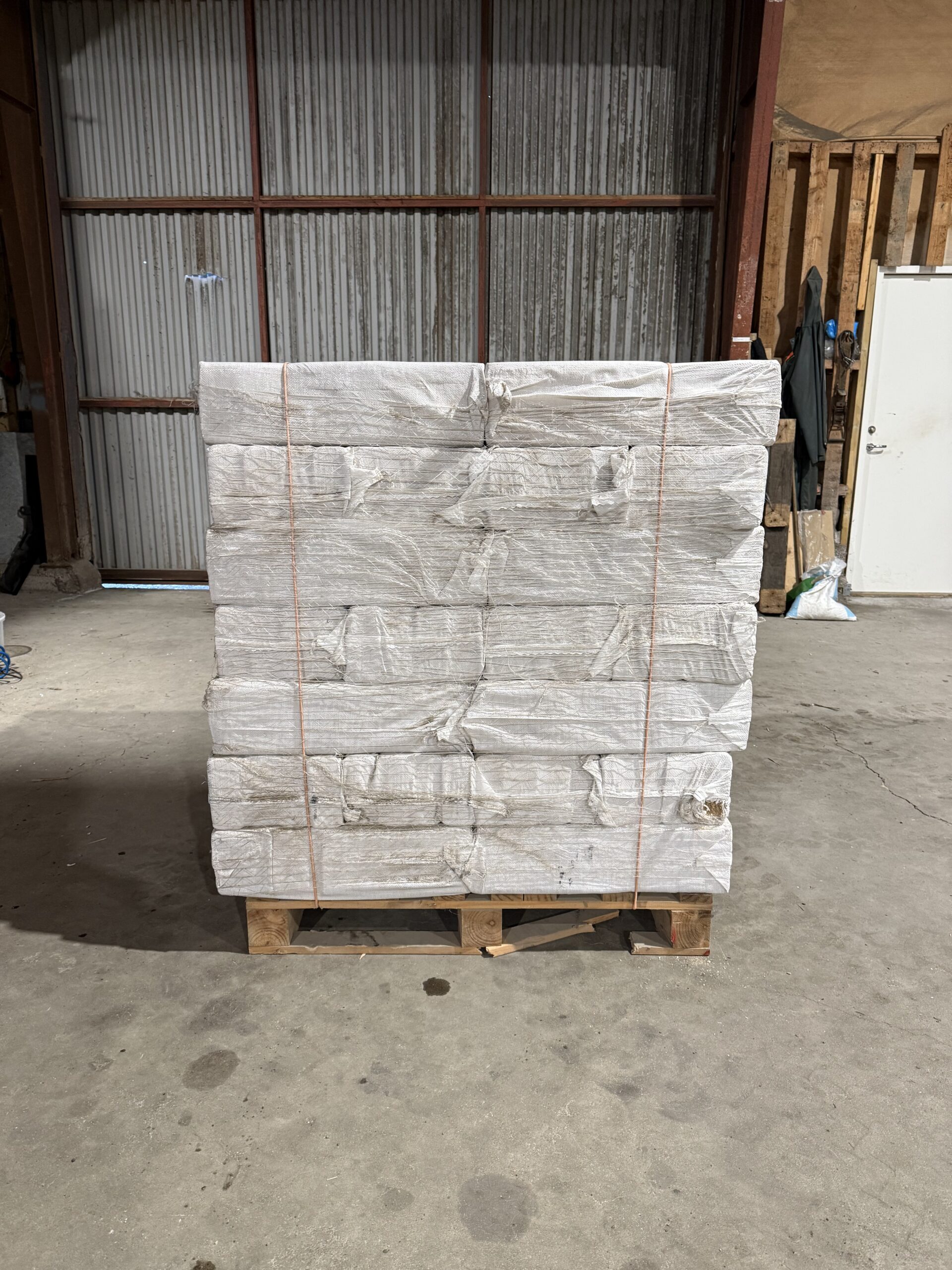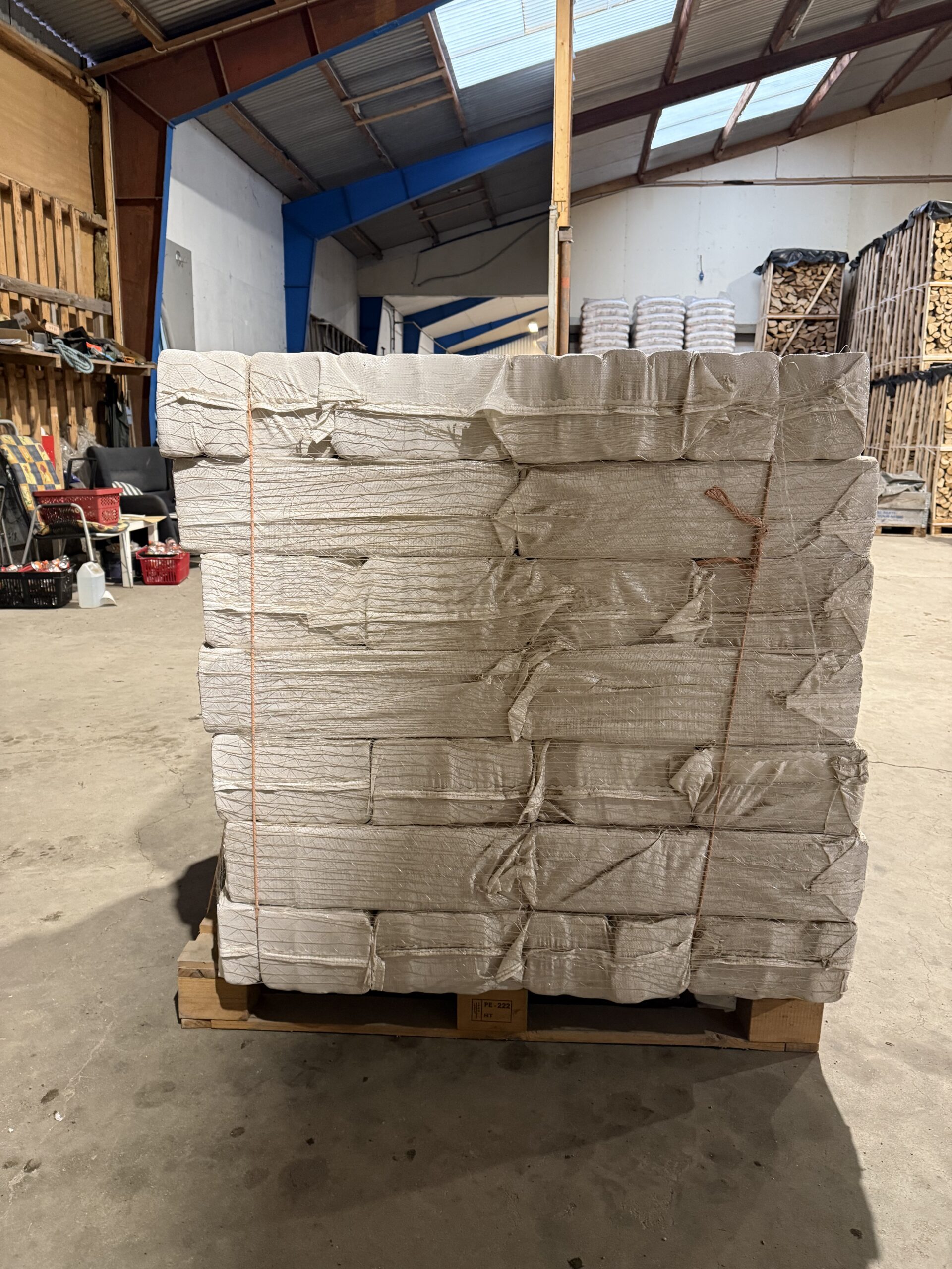 Pallen pakkes med 56 pakker træbriketter – vægt ca. 1000 kg